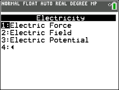 Calculates the value of electric forces, fields, and potentials with the option for an unknown value; uses several algebraic formulas in electricity physics.