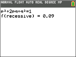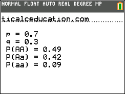 Calculates Hardy-Weinberg population calculations: frequencies of dominant and recessive alleles as well as frequencies of each genotype combination.