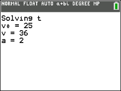 Calculates the time, velocity, distance, or acceleration value in any of the three algebraic kinematics equations given the input of the other values.